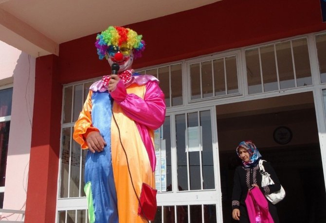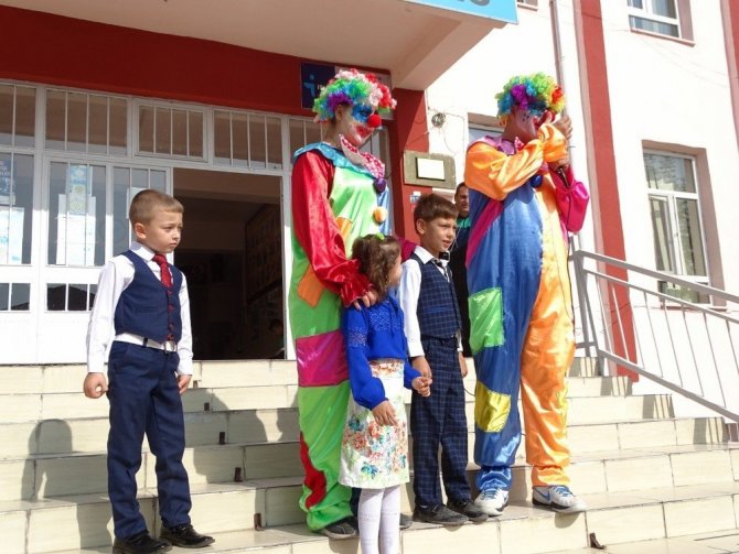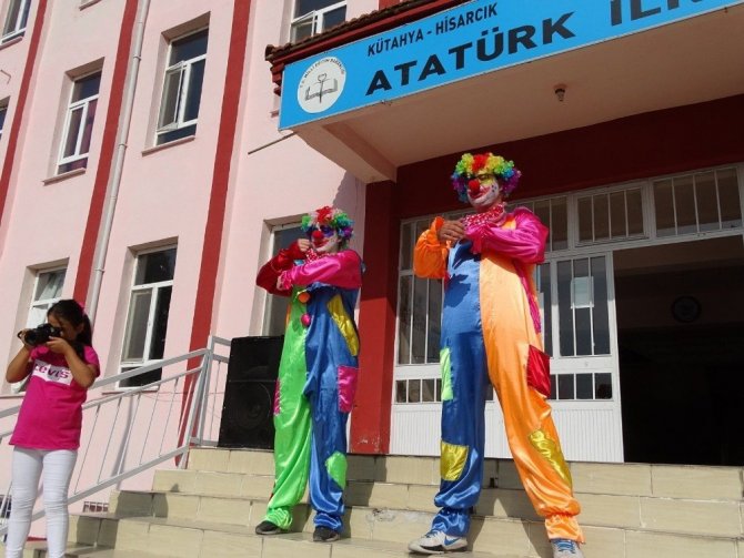 Kütahya’nın Hisarcık ilçesi Atatürk İlkokulunda okul öncesi ve 1. sınıf öğrencilerinin okul kaygılarının giderilmesi ve okula alışmalarını kolaylaştırmak amacıyla uygulamaya koyulan ’uyum programı’ kapsamında okula gelen minikleri palyaço kılığına giren Sınıf Öğretmeni Yusuf Kelek karşıladı.