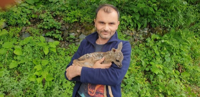 Ordu'da bir kişi karaca yavrusunu başıboş köpeklerin saldırısından kurtardı.