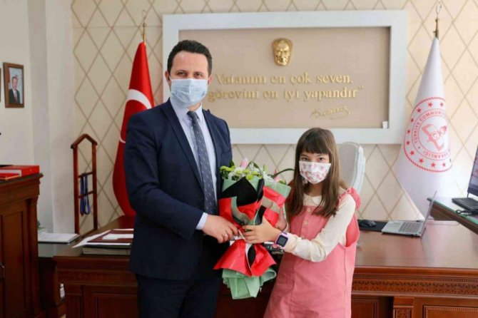 Muğla Milli Eğitim Müdürü Emre Çay, Merkez Atatürk İlkokulu ve Fethiye Bilim Sanat Merkezi öğrencisi minik yazar Elif Sıla Bozyiğit'i makamında ağırladı.