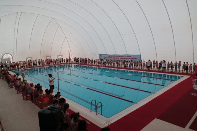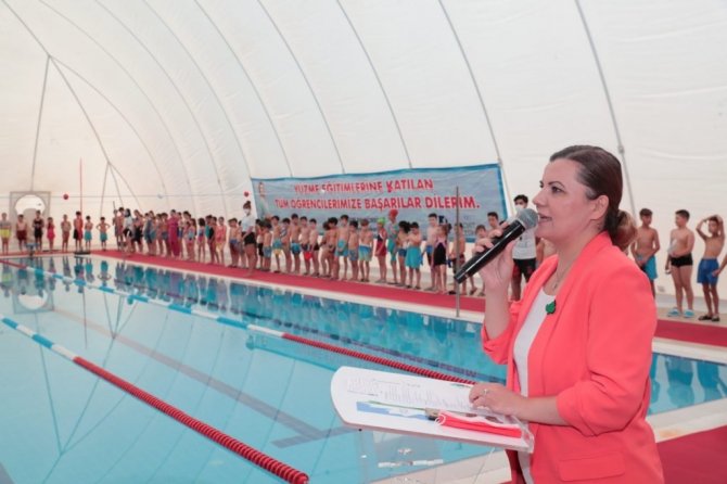 Törende konuşan Hürriyet, "Bu kadar güzel, aydınlık geleceğimizi bir arada görmek çok kıymetli. Burada yüzme öğrenen çocuklarımızın birçoğu belki de yüzme yarışlarında ciddi başarılara imza atacak. Sporun her dalını desteklemeye devam ediyoruz. Anne ve babalardan ricam; çocuklarını sporda, sanatta, kültürde ve her alanda fazlasıyla destekleyin.