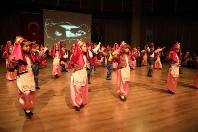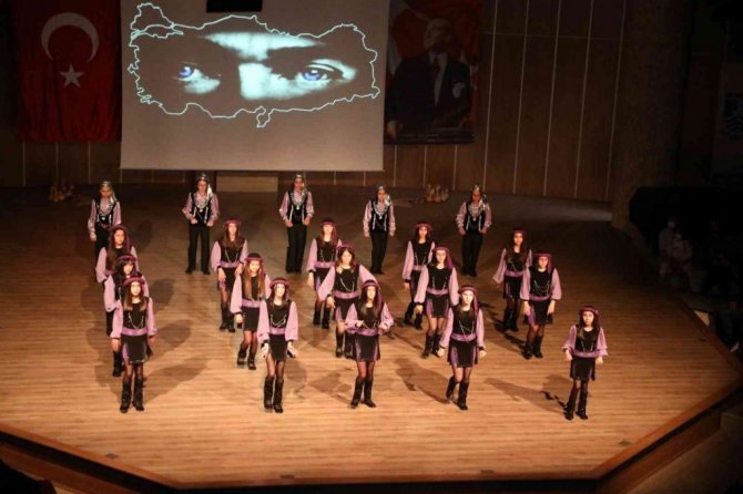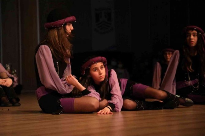 Kültür merkezinin tamamen dolu olduğu gösteride yaklaşık 160 öğrenci sahne aldı. Zeybek, Karadeniz, Trakya, Teke, Doğu yöresi oyunlarının sergilendiği gösterilerini sundu.