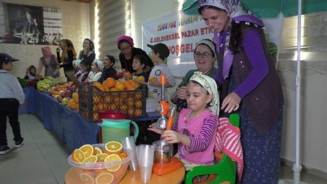 Yoğun bir katılımla gerçekleştirilen etkinliğin açılışında konuşan Okul Müdürü Hicran Toprakçı, “Beslenme Dostu Okul Programı, Tutum Yatırım ve Türk Malları haftası ile Değerler Eğitimi etkinlikleri kapsamında okulumuzda 4.’sünü gerçekleştirdiğimiz ’Geleneksel Perşembe Pazarı’ etkinliğimiz bir kez daha çocuklarımızın desteğiyle yapılıyor. Okulumuzda eğitim öğretim etkinliklerini planlarken öğrencilerimizin yaparak, yaşayarak ve eğlenerek oyunlar yoluyla öğrenmelerini önemsiyoruz. Öğrenmenin en hızlı olduğu okul öncesi dönemi daha nitelikli hale getirmeye çalıştığımız okulumuzda öğrenme ortamlarımızı ve tekniklerimizi her geçen gün iyileştiriyor ve zenginleştiriyoruz. Okulumuzda gerçekleştirdiğimiz bu etkinlikler yoluyla öğrencilerimizin daha dinamik bir süreç geçirmelerini, okula severek gelmelerini sağlıyoruz. Yine öğrencilerimizin farklı deneyimler edinmesini, sorumluluk almasını, problem çözme becerisi ve kendini ifade edebilme becerilerini kazanmalarını hedefliyoruz. Yaptığımız bu etkinliklerle ayrıca paylaşma, dayanışma, işbirliği ve empati yapabilme becerisi kazandırıyoruz. Milli ve manevi değerlerimize, kültürümüze, gelenek ve göreneklerimize sahip çıkabilen duyarlı ve bilinçli öğrenciler yetiştirmeyi hedefliyoruz. Tüketen değil üreten bireyler olmalarını istiyoruz. Bu hedeflerimize ulaşmak için yaş gruplarına uygun dikkatlerini çeken ve uygulamalı etkinlikler yaparak eğlenerek öğrenmelerini sağlıyoruz. Bu etkinliklerimizden sadece bir tanesi de şu an gerçekleştirdiğimiz geleneksel pazar etkinliğimiz. Öğrencilerimiz bu etkinlik yoluyla meslekleri tanıyor, empati kuruyor, alışveriş kültürünü öğreniyor. Finansal okuryazarlık becerilerini kazanıyor. Sorumluluk alıyor ve sorumluluğunu yerine getirmenin mutluluğunu yaşıyor, kendini ifade edebilme becerisi ve özgüven kazanıyor. Kültürümüzü, örf ve adetlerimizi öğreniyor ve bunlar gibi daha birçok kazanım elde ediyor ama bunları eğlenerek öğreniyor. Edindikleri bu kazanımların yanı sıra öğrencilerimiz emek vererek kazandıkları gelir ile 4 yıldır okulumuzda sürdürülen ‘Kitaplar Uyanıyor’ projesi için kitap alarak kitap okuma alışkanlıklarını pekiştiriyor” dedi.