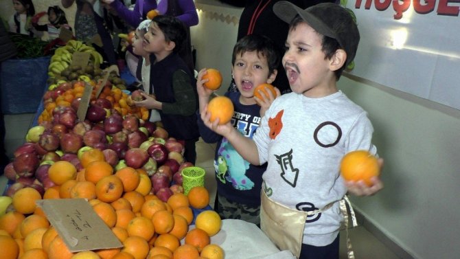 Öğrencilerin pazarcı ve pazar alışverişi yapan vatandaş rollerini üstlendiği etkinliğin geliri ise kitap alınmak üzere kumbaralara girdi.