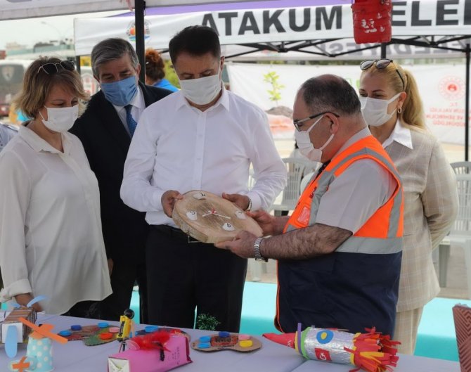 Çevre konusunda duyarlılık ve farkındalık yaratmaya çalıştıklarını belirten Atakum Belediye Başkanı Av. Cemil Deveci, "Doğayı kirlettik. Sizin geleceğinizi karartıyoruz. Bizim yaş grubumuz sizin geleceğinizi karartıyor. O nedenle sizin azminiz, bizim de kendi hatalarını telafi eder çalışmamızla sürdürülebilir sizin de içinde yaşayabileceğiniz huzurlu olabileceğiniz bir çevre hedefliyoruz. Doğa insanla vardır. İnsansız doğa olmaz. Doğayı tahrip eden çevreyi tahrip eden insandır. Bu nedenle doğayı tahrip etmezsek gölleri, ağaçları kurutmayız. Ormanlar yemyeşil olur. Dünyanın en güzel coğrafyası, Anadolu coğrafyası o sizin mutlu, huzurlu, sağlıklı bir şekilde yaşayabileceğiniz coğrafi alan olarak kalmalı. Göllerimiz kuruyor, koca denizlerimiz bizim ellerimizle kirleniyor. Bunu ortadan kaldırabilmeliyiz. Çevre Müdürlüğü ile belediyeler bunun için var. Çevre Müdürlüğü'nün en yakın paydaşı belediyeler. Önümüzdeki süreçte ciddi iş birlikleri yapacağız. Sıfır Atık Projesi artık olmazsa olmaz projemiz. Atıklarımızı kaynakta ayrıştıracağız. Onlardan değer elde edeceğiz. Onlardan bir kısmını ekonomiye dönüştüreceğiz; diğerini de kompost olarak tarım ve hayvancılık için kullanacağız. Böylece toprağımızı daha verimli hale dönüştüreceğiz. Ürettiğimiz atıklardan üretime katkı sağlayacak oluşumlar sağlayacağız. Bunları yapabiliriz; geciktik ama yapmalıyız. Bundan sonraki süreçte yapacağız. Siz sevgili çocuklar annelerinize mutfakta kağıtları, plastikleri, cam şişeleri, mutfağın atıklarını ayrı çöp kutularına atmasını tembihleyin ve mutfağın kapısından yapıyor mu yapmıyor mu diye izleyin. Bundan sonraki ödeviniz bu" diye konuştu.