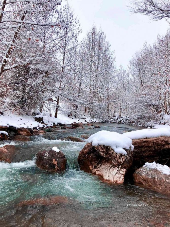 Elazığ'ın Arıcak ilçesinde bulunan Mirvan Çayı, kar yağışının ardından beyaza büründü. Akdağ Yaylası'ndan gelen doğal suyla oluşan akarsu, görünümüyle cezbediyor. Derin bir vadinin içerisinde bulunan ve çevresi ağaçlarla çevrili olan Mirvan Çayı, yılın her mevsimi ayrı bir güzelliğe bürünüyor.