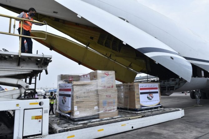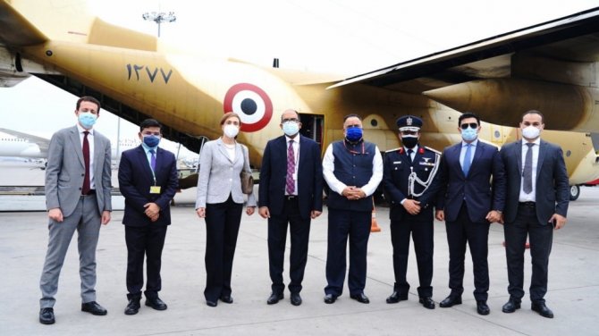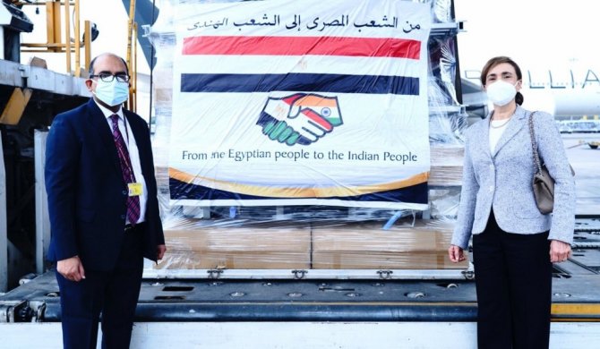 Mısır, Hindistan'ın Covid-19 ile mücadelesine destek olmak üzere 300 oksijen tüpü, 50 oksijen konsantratörü ve 8 bin ampul dahil olmak üzere 30 ton tıbbi malzeme gönderdi.
