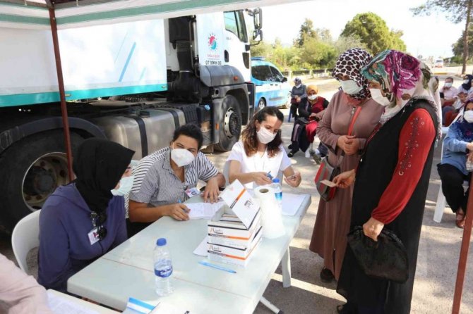 Kepez Belediyesi, Mobil Sağlık Merkezi ile meme, bağırsak ve rahim ağzı kanser taramalarını Finike'de sürdürüyor.