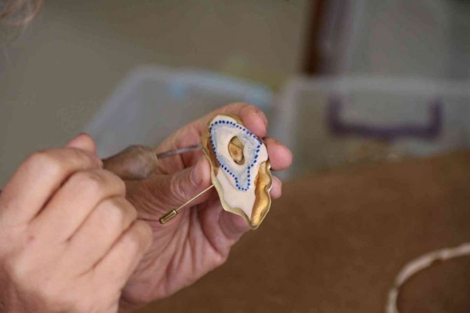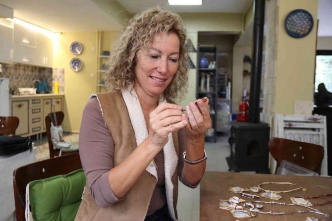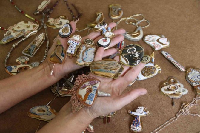 Eskişehir'de seramik sanatına olan ilgisini takılarla birleştirmeye karar veren akademisyen Sibel Sevim, "giyilebilir sanat eseri" adı verilen ürünlerle, hem eski dönem çini yansımalarını yaşatıyor, hem de farklı materyalleri bir araya getiriyor.