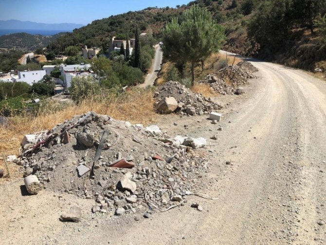 Bodrum'un Yakaköy Mahallesi ile Dereköy Mahallesi arasındaki dağ yolu, moloz ve hafriyat döküm sahasına dönüştürüldü. Bölge sakinleri tarafından çok kullanılmayan yolun ıssız olmasını fırsat bilen bazı kişiler, yol kenarına moloz ve hafriyatları döktüğü öğrenildi. O şahıslardan ikisi, mahalle sakinleri tarafından suçüstü yakalandı. Bir kamyonetle bölgeye gelen 2 kişi, molozları dökerken mahalle sakinlerince cep telefonuyla görüntülendi. Görüntülendiklerini anlayan 2 şahsın, kendilerini görüntüleyen mahalle sakinine tepki gösterdiği öğrenildi. Mahalle sakinleri kamyonetin plakası ilgili birimlere ihbarda bulundu.
