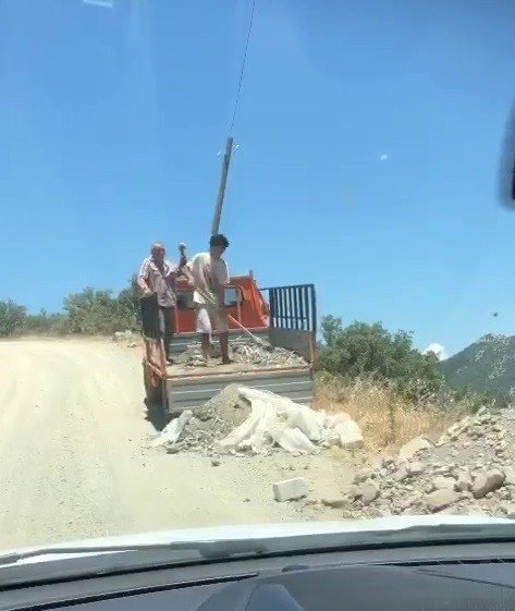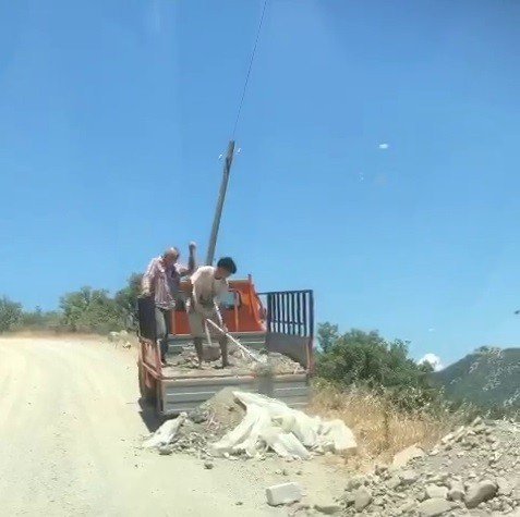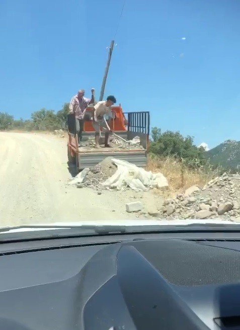 Muğla'nın Bodrum ilçesinde kimliği belirsiz vatandaşlarca bir kamyonetten yol kenarına moloz dökülmesi vatandaşlarca görüntülendi.