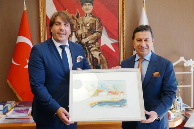 Budva'dan getirdikleri tabloyu hediye eden heyete Bodrum Belediye Başkanı Aras da Bodrum'la ilgili hediyeler vererek İngilizce yazılı "Gazi Mustafa Kemal" isimli kitabını da hediye etti.