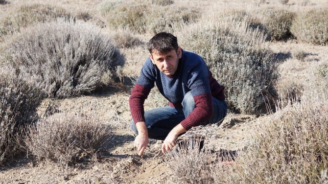 Denizli'de son zamanlarda dikim alanı artan ve halk arasında "Mor deniz" olarak anılmaya başlayan lavanta da bahar bakımı zamanı geldi.