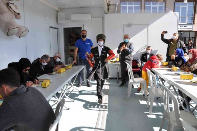 Motivasyon eğitimine öğrencilerle birlikte velilerin de katılmasıyla birlikte, 67 yaşındaki Metin Canbulut'un akordiyonu eşliğinde öğrencilerin sergilediği Çerkes halk dansları renkli görüntülere sahne oldu.