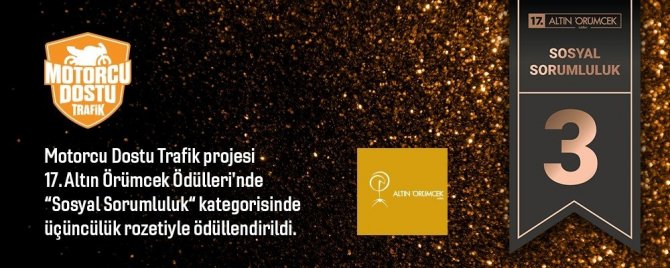 Motorcu Dostu Trafik projesi, tasarım, kullanıcı deneyimi, teknik alt yapı ve özgünlük kriterlerine göre Altın Örümcek Ödülleri’nde sosyal sorumluluk kategorisinde ödül aldı.