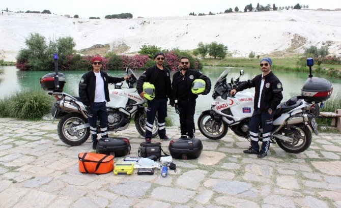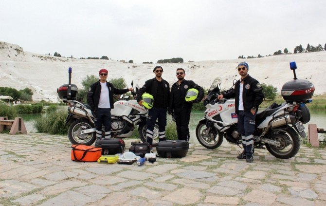 Denizli İl Sağlık Müdürlüğü bünyesinde bulunan 2 adet Motosiklet Ambulans, turizm sezonunun başlamasıyla birlikte görevlerine başladı. Biri merkezde diğeri de Pamukkale Travertenlerinde konuşlanan motorize ekipler, kara ambulansı gelinceye kadar vak’alara ilk müdahaleyi gerçekleştiriyor.