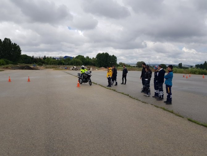 Motosikletli Ambulans Timleri'ne yaklaşık 3 yıldır yaz dönemi öncesi sürüş eğitimi veriliyor. Eskişehir İl Emniyet Müdürlüğünün motosiklet sürüş eğitmeni polis memuru Özgür Tombakoğlu tarafından verilen eğitim, bu sene 24 Mayıs – 4 Haziran tarihleri arasında gerçekleşti. Eskişehir Organize Sanayi Bölgesi açık alanında yapılan eğitime katılan tüm personeller kursu başarı ile bitirerek sertifikalarını İl Sağlık Müdürü Prof. Dr. Uğur Bilge, İl Ambulans Servisi Başhekimi Dr. Veli Görkem Pala ve Eskişehir İl Emniyet Müdürlüğü İl Emniyet Müdür Yardımcısı Özcan Arpacı'dan aldı. Eğitime katılan ve Türkiye'de sadece iki kişi olmalarıyla dikkat çeken kadın motosikletli ambulans sürücüleri sürüş eğitimini başarıyla tamamladılar.