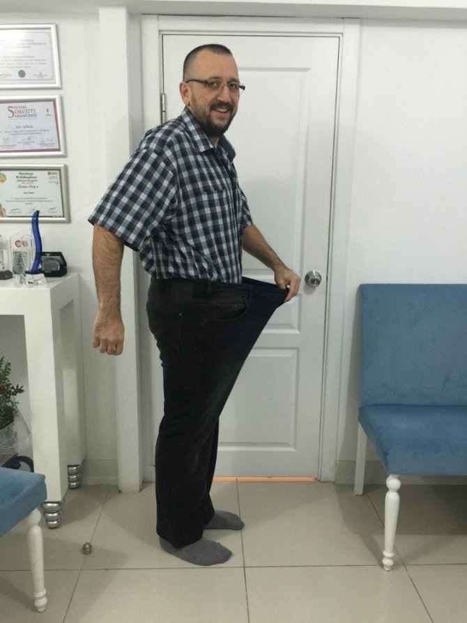 Baş ağrısı için MR tetkiki yazılan 160 kilo ağırlığındaki İzmirli Saygun Bursalıoğlu, “Bu kiloyla MR’a giremezsiniz yanıtı alınca” hırs yapıp zayıflamaya karar verdi. Uzman Diyetisyen Aslı Kınsız’ın hazırladığı programa harfiyen uyan Bursalıoğlu, kısa sürede 92 kiloya düştü.