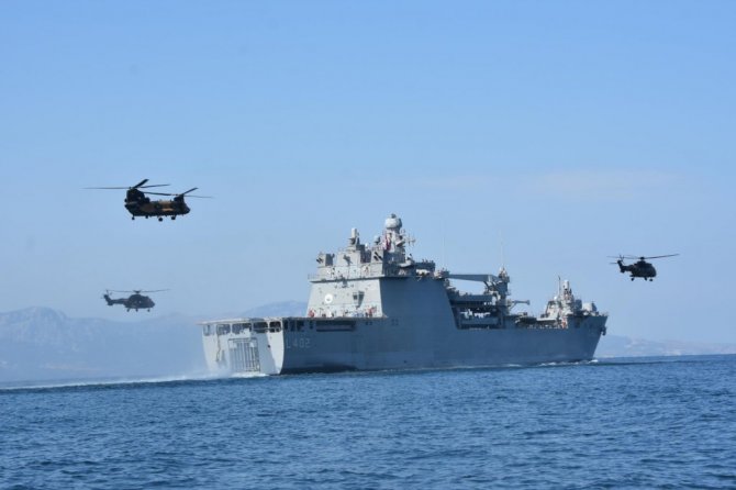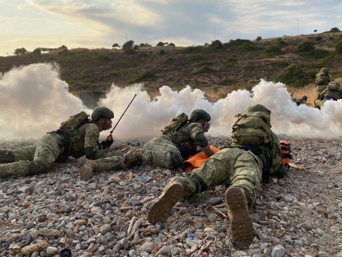 Milli Savunma Bakanlığının sosyal paylaşım sitesi Twitter hesabından yapılan paylaşımda, "Amfibi Görev Grup Komutanlığı Harekâta Hazırlık Eğitimleri, İzmir Körfezi'nde Kara Kuvvetleri Komutanlığından helikopter ile tank çıkarma gemileri, araçları ve tabur çıkarma timlerinin katılımıyla gece ve gündüz şartlarında başarılı şekilde icra edildi" ifadelerine yer verildi.