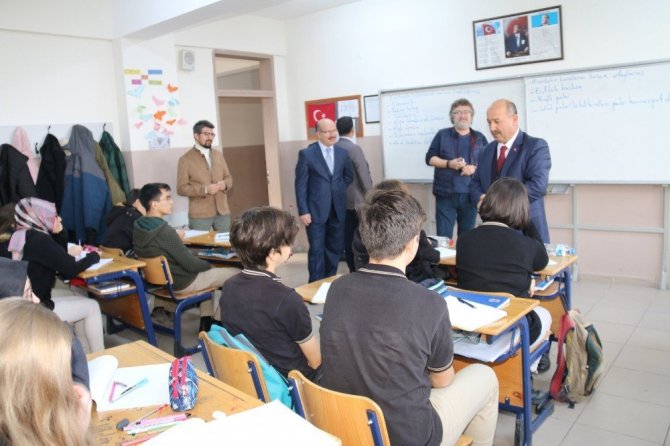 İl Millî Eğitim Müdürü Hasan Başyiğit ve Şube Müdürü İsmail Güven Atatürk Lisesi’ne gerçekleştirdikleri ziyarette Okul Müdürü İsmail Baş’tan okuldaki akademik çalışmalar ve projeler, okulun fizikî sorunları ile ilgili bilgi aldı.