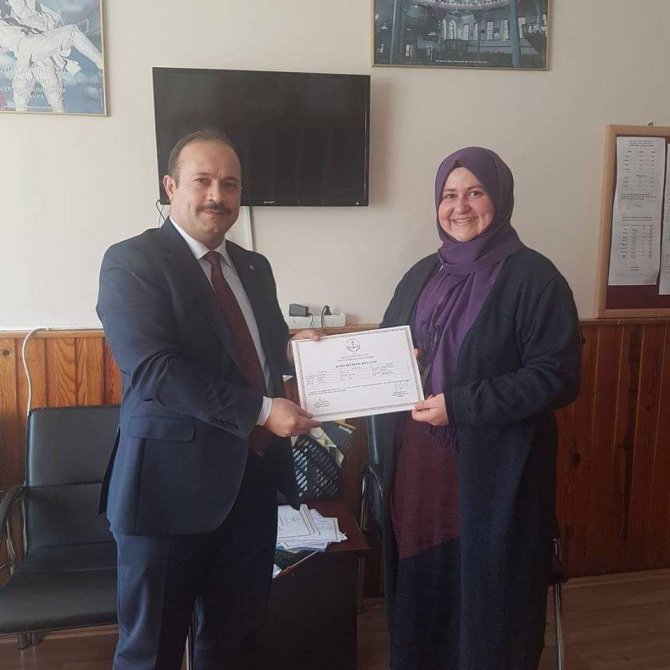 Altıntaş İlçe Milli Eğitim Müdürü Numan Tanrıkulu kursu başarıyla bitiren öğretmenlere belgelerini takdim etti.