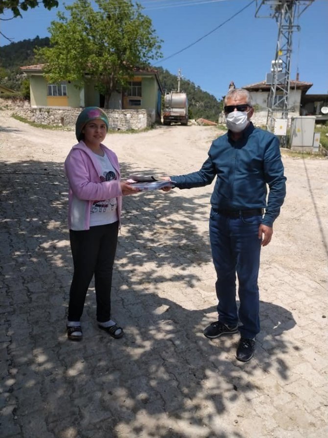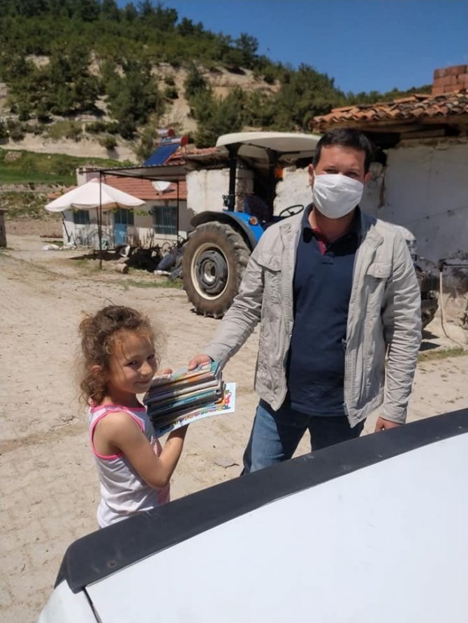Manisa’nın Selendi ilçesi Çamlıca İlköğretim Kurumu idarecileri ve öğretmenleri taşımalı sistem ile okullarına gelen ve yeni tip korona virüs (Covid-19) salgını nedeniyle uzaktan eğitim ile evlerinde eğitim alan öğrencilere evlerine kadar giderek tek tek kitap dağıttı.