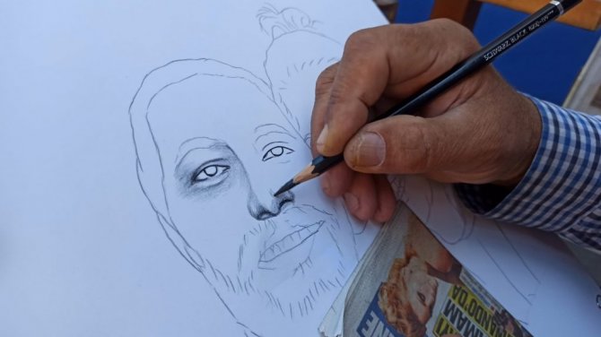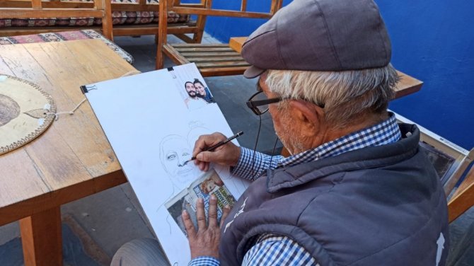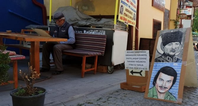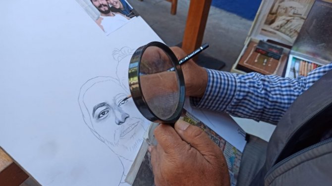 Eskişehir'de bir kafede kendisine ayrılan bölümde resim çizen Ali Ünal, ilkokulda çizim yeteneğini fark ettikten sonra kendini resim yapmaya adadı. Kafede kendine ayrılan masada isteyenlere karakalemle çizimlerini yapıp geçimini sağlayan Ünal, kafeye gelen insanların ilgi odağı oluyor, belli bir ücret karşılığında resim çizecek fotoğrafa bakarak ortalama bir günde resmi tamamlayıp teslim ediyor.