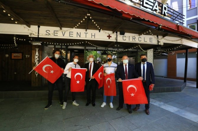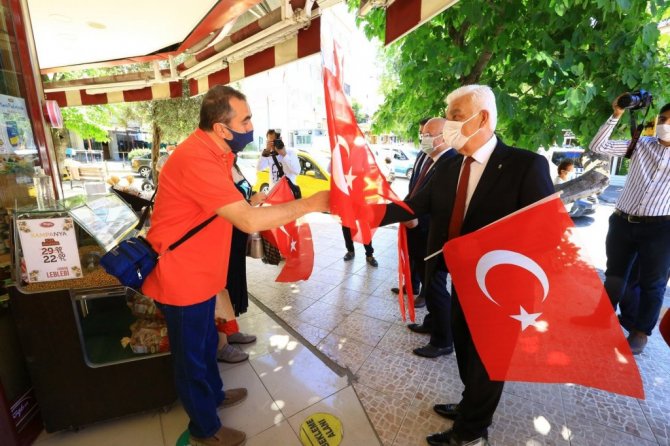 Muğla Büyükşehir Belediye Başkanı Dr. Osman Gürün, kutlamalarını daha renkli hale getirmek adına ev ve iş yerlerine Türk Bayrağı dağıttı.