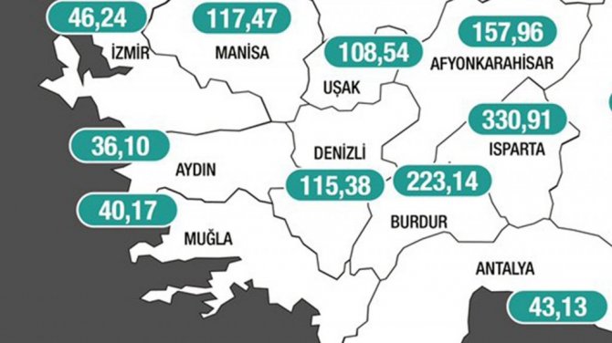 Sağlık Bakanlığı tarafından açıklanan bir haftalık vaka oranında ilk sırada yüzde 36,10 ile en az vakanın görüldüğü il Aydın olurken, Muğla 100 bin kişide yüzde 40,17 ile ikinci sırada yer aldı. Bir hafta önce 100 bin kişide 45,6 olan vaka sayısı bu hafta 5 puan birden düşüş yaşadı.