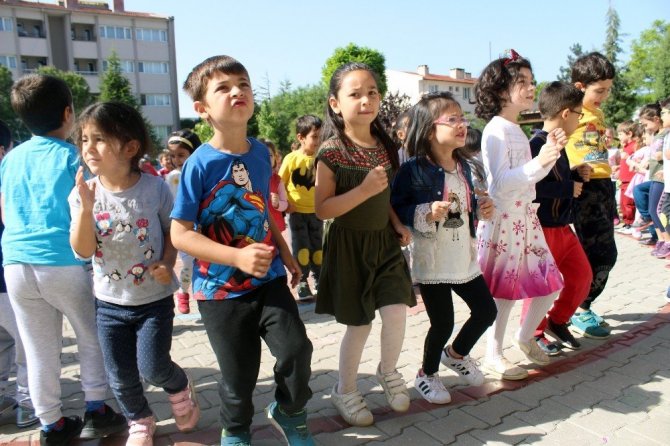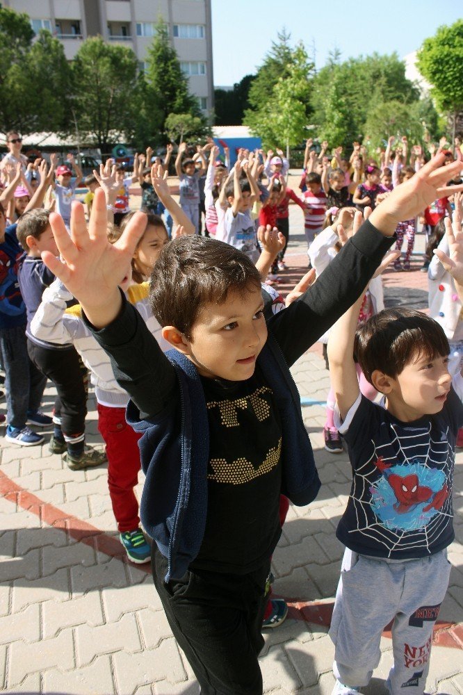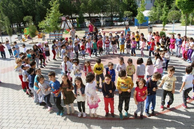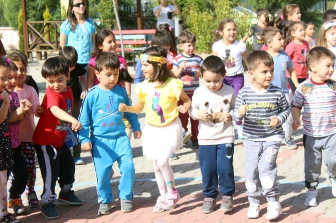 Menteşe’de bulunan Şemsiana Anaokulunda gerçekleştirilen etkinlikte öğretmenler de öğrencilere eşlik ederken renkli görüntüler oluştu.