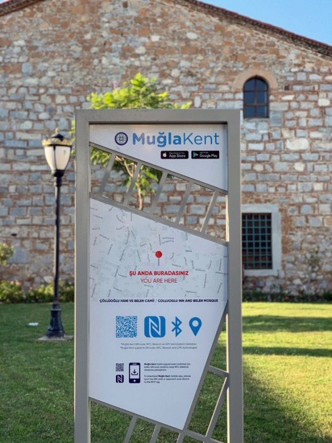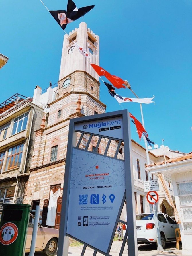 Türkiye’nin ilk ve en büyük akıllı şehircilik mobil uygulaması olan MuğlaKent projesi Muğla’nın 13 ilçesinde 210 noktaya dikilen bilgilendirme tabelalarından oluşuyor. Tabelaların üzerinde bluetooth ile bilgi vermek için beacon cihazı, akıllı telefonların temassız özelliği ile bilgi vermek için NFC kartlar, yine kamera üzerinden bilgi aktarmak için QR kod uygulaması bulunuyor. Antik, tat, turizm, edebiyat, kültürel noktalar konularında yerli ve yabancı turistler Türkçe, İngilizce, Rusça ve Almanca dillerinde bilgilendiriliyor. Özellikle Muğla’ya gelen yabancı turistler için havalimanlarında ve deniz gümrük kapılarına yerleştirilen bilgilendirme tabelaları ile sisteme giriş yapan herkes dil seçimini de yapabiliyor. Türkçe, Almanca, İngilizce ve Rusça seçeneklerden birisini tercih edenler yakınlarında gitmek istedikleri tatil eğlence yerlerinin fotoğraf ve videolarını da görme şansına sahip oluyor. MuğlaKent projesi hayata geçirildiği günden itibaren uygulama en çok Türkçe daha sonra İngilizce, Almanca ve Rusça olarak kullanıldı.