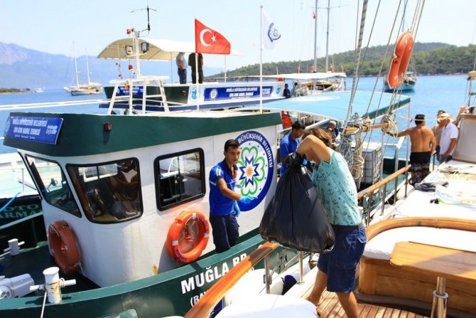 Muğla Büyükşehir Belediyesi "Mavi Deniz Temiz Kıyılar" projesi kapsamında 7 tekne ile deniz araçlarından atıkları alıp Göcek ve Akyaka'da bulunan atık alım merkezinde topluyor. Muğla Büyükşehir Belediyesi bu güne kadar 11 bin 740 tekneye hizmet verirken bu teknelerden 8 milyon 418 bin 385 kilogram evsel atık, 7 milyon 487 bin 213 litre pis su,34 bin 988 litre sintine, 8 bin 866 litre atık yağ topladı. Ekipler ayrıca denizden kıyıya vuran 141 bin 972 kilogram atık alındı.