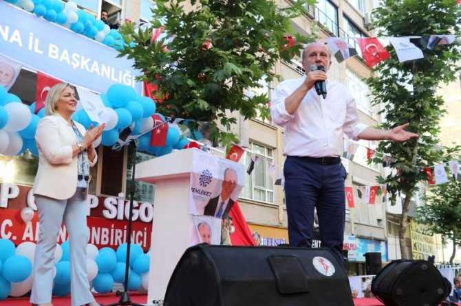 Merkez Seyhan ilçesi Ziyapaşa Caddesi'nde yapılan açılış töreni öncesi konuşan İnce, zabıta ekiplerince afişlerinin indirtilmesi nedeniyle Adana Büyükşehir Belediye Başkanı Zeydan Karalar'a tepki gösterdi. İnce, "Zeydan Karalar, sen Muharrem İnce'nin afişlerinden ne istiyorsun da zabıtaya indirttin. Burası Adana, burası İnce Memed'in memleketi onun gibi davran Abdi ağa gibi davranma. İnce Mehmet gibi davran. O afişlerin, bayrakların içerisinde belediyenin, müteahhittin, hazinenin, rantın parası yok. Alın teri var. O otobüste 81 yürekli insanın parası var orada. İllerde de o yürekli insanların parası var. Senden o afişlerin parasını alacağım haberin olsun. Abdi ağalara yer yok. Benim adım İnce Muharrem sende İnce Memed'e yakışır gibi davran. Ne diye indiriyorsun benim afişimi. Bak lazım olurum sana bir gün. Unutma bunu. Yazarım defterin bir kenarına" diye konuştu.