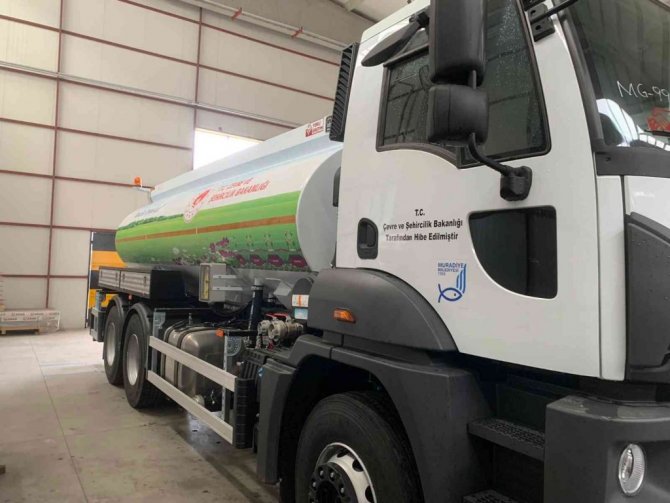 Muradiye Kaymakamı ve Belediye Başkan Vekili Erkan Savar'ın talep ve girişimleri ile Çevre, Şehircilik ve İklim Değişikliği Bakanlığı tarafından hibe edilen son teknolojik 13 bin litrelik 1 adet sulama tankeri Muradiye Belediyesine teslim edildi.