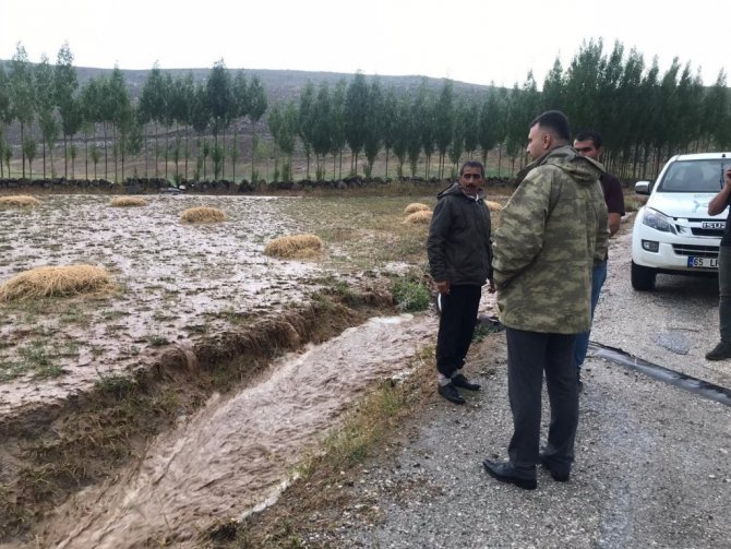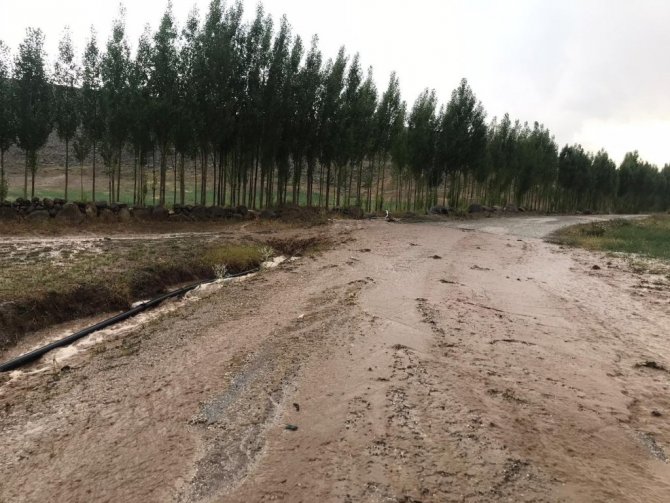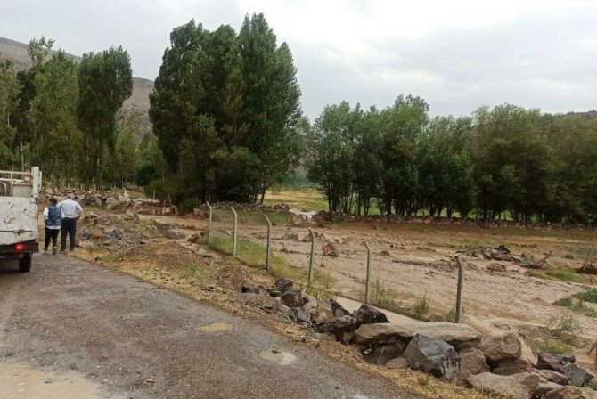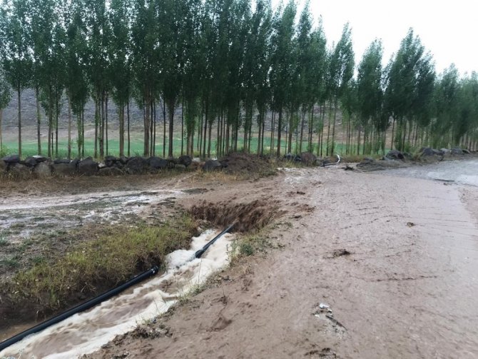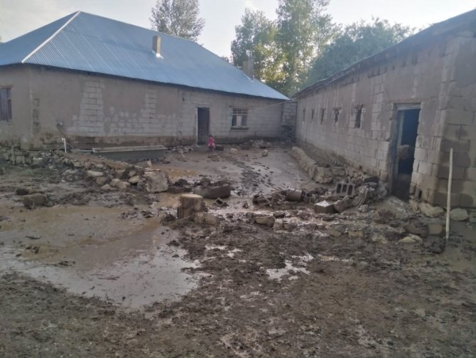 Van'ın Muradiye ilçesinde etkili olan sağanak yağış nedeniyle meydana gelen su baskınında bazı evler ve ekili araziler su altında kaldı.