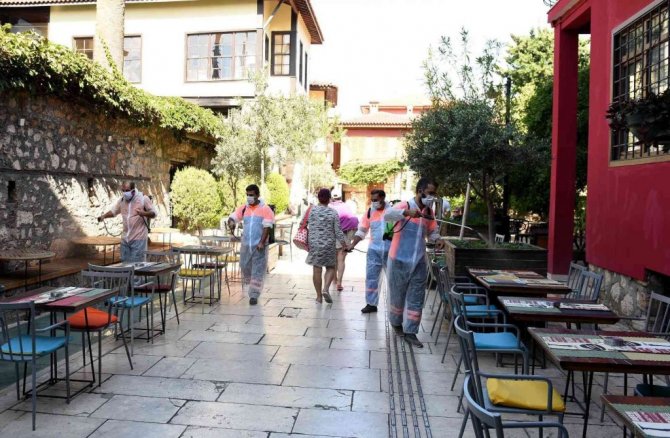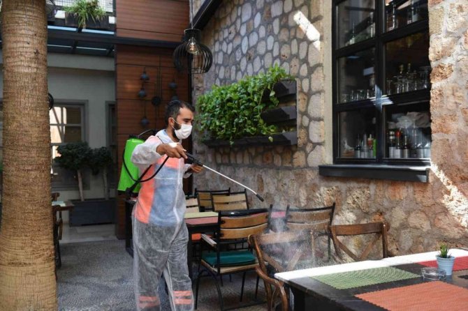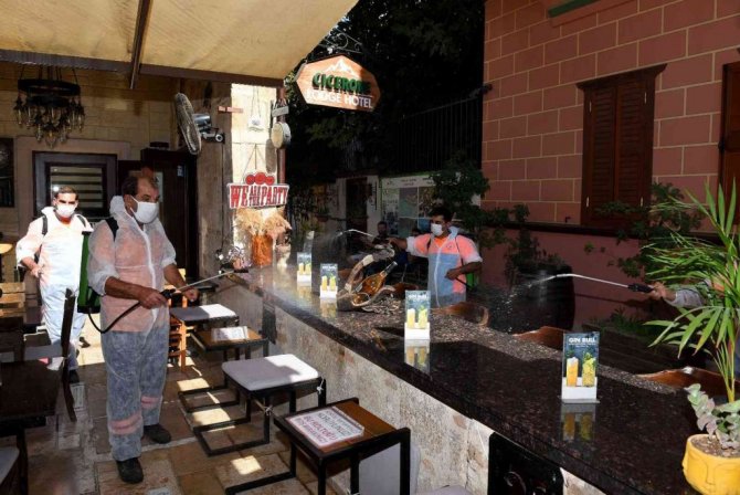 Muratpaşa Belediyesi, 14 Ekim Perşembe günü başlayacak 6. Kaleiçi Old Town Festivali öncesi, restoran ve kafeleri dezenfekte etti.