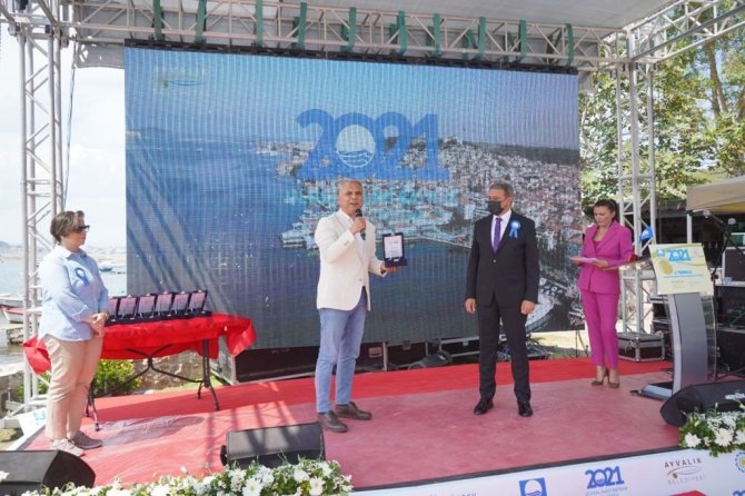 Konuşmaların ardından, 2021 yılında ülkemizde otel, marina, yat ve turizm teknelerinde dalgalanacak "Mavi Bayraklı Tesisleri" temsilen "Mavi Bayrak" alan tesisler adına göndere Mavi Bayrak çekildi. Törene ev sahipliği yapan Ayvalık Belediye Başkanı Mesut Ergin, Balıkesir Büyükşehir Belediyesi Başkanı Yücel Yılmaz ve Balıkesir Valisi Hasan Şıldak'a teşekkür plaketi verildi.