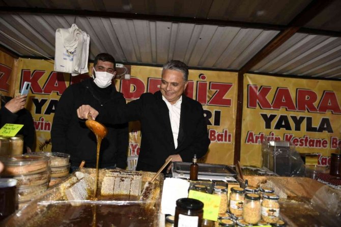 Yılbaşı Çarşısı'nın ilk gün ziyaretleri arasında Belediye Başkanı Uysal da yer aldı. Başkan Uysal, stantları tek tek ziyaret edip bol kazançlar dilerken vatandaşların yeni yıllını da şimdiden kutladı.