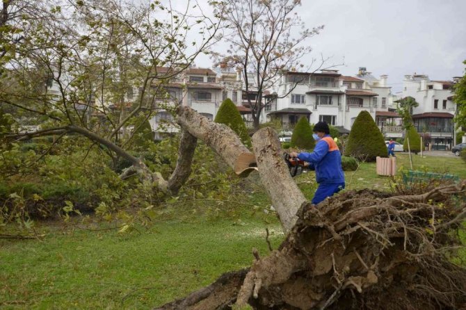 Muratpaşa Belediyesi, Antalya ve çevresinde dün gece başlayan ve şiddetini artırarak devam eden fırtınada devrilen ağaçları kaldırma ve temizleme çalışmalarına aralıksız devam ediyor. Ekipler, gün içinde 170 ağaç devrilme vakasına müdahale etti.