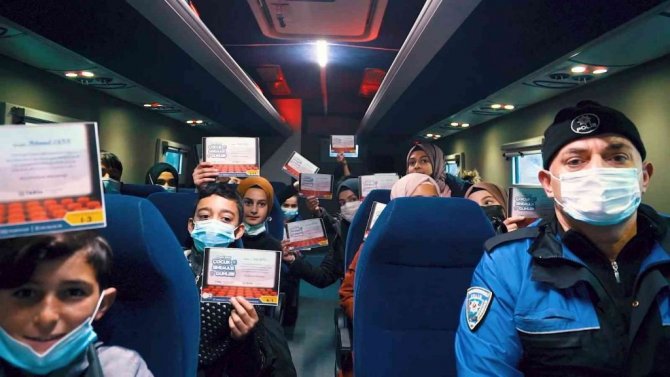 Çocuklar, eğlenceli gezinin ardından polis ekipleri tarafından güvenli bir şekilde okullarına geri götürülüyor.