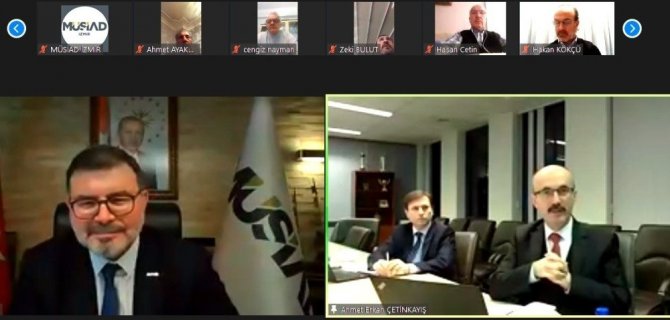 Müstakil Sanayici ve İşadamları Derneği (MÜSİAD) İzmir Şubesi, Başkan Bilal Saygılı başkanlığında gerçekleştirilen Dost Meclisi video konferans toplantısında Ticaret Bakanlığı İthalat Genel Müdürü Ahmet Erkan Çetinkayış ve Genel Müdür Yardımcısı Murat Gören'i misafir etti.