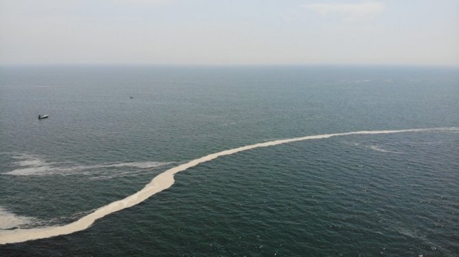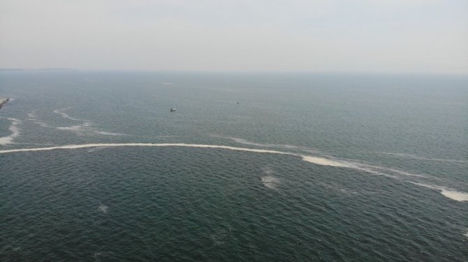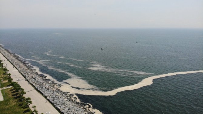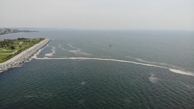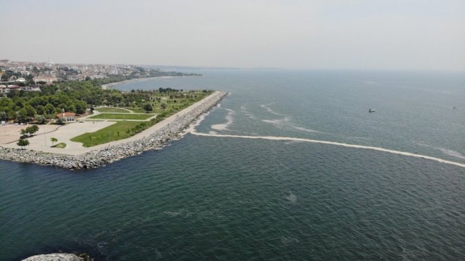 Haftalardır Marmara Denizi'nde etkili olan deniz salyası Avcılar sahilinde de görüldü. Sahili çeviren müsilaj çemberi havadan görüntülendi.