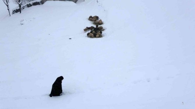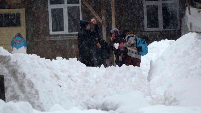 Köy sakinlerinden Eyüp Omur, 2 günden bu yana kar yağışının devam ettiğini söyledi. Kar kalınlığının 50 santimetreye yaklaştığını anlatan Omur, "Çatılardan düşen karlarla kapıların önünde 1 metreyi aşan kar kütleleri var. Biz kapıların önünü açarak evlere gitmeye çalışıyoruz. İş makinesinin giremediği yerleri küreklerle, ellerle açıyoruz. 6 aya yakın kar altında kalıyoruz. Köyümüz şu anda kar altında kaybolmuş durumda. Bazı yerlerde çatı ve zemin birleşmiş" dedi.