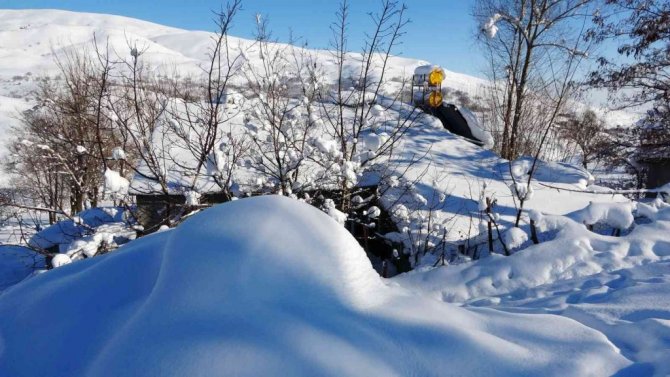 Köy sakinlerinden Selim Güler, kar kalınlığının köyde 1 metreyi aştığını belirterek, karda yol açmanın çok zor olduğunu söyledi. Güler, "Karda ulaşım zor. İş makineleri sokaklar dar olduğu için buralara giremiyor, ondan dolayı hedikleri kullanıyoruz. Komşularımıza bu şekilde gidip geliyoruz" dedi.