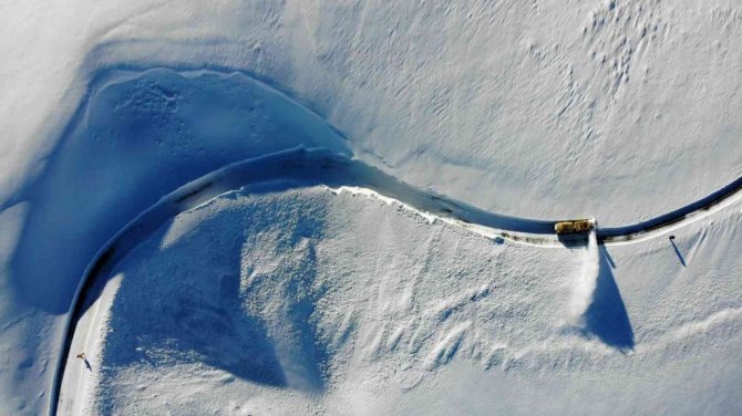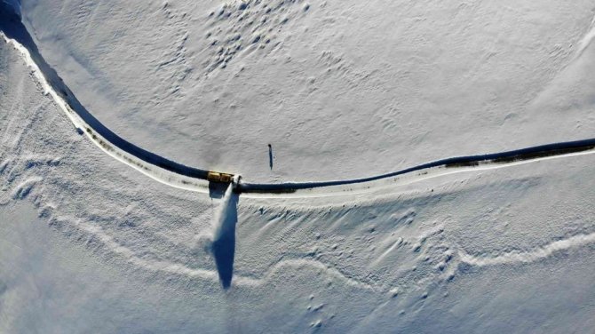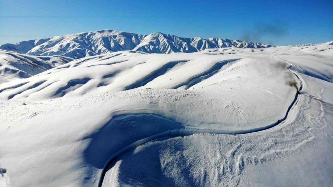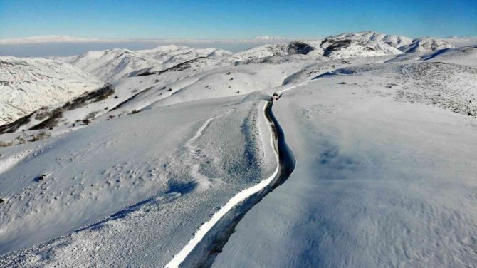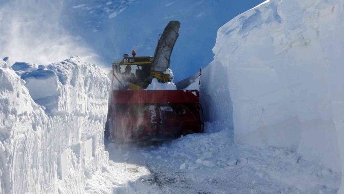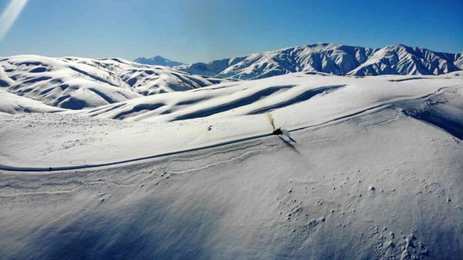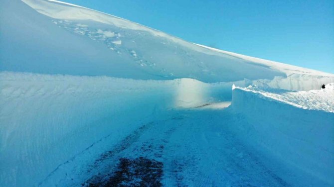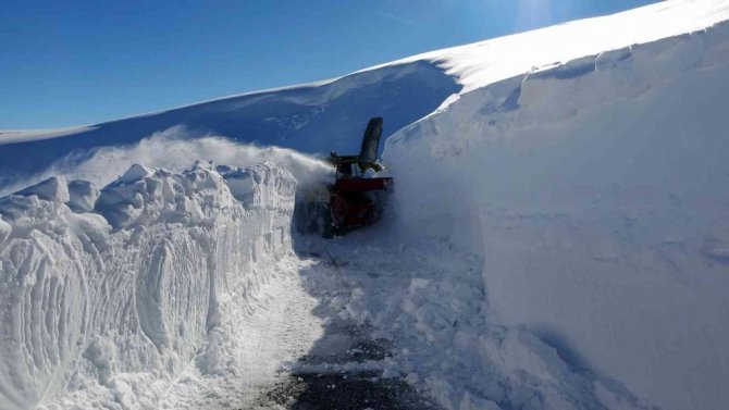 Kentte etkisini sürdüren kar yağışı ve fırtına hayatı olumsuz yönde etkilemeye devam ediyor. Yoğun kar yağışı, fırtına ve tipi nedeniyle köylere ulaşmakta zorluk yaşayan il özel idaresi ekipleri, kar kalınlığının iş makinelerinin boyunu aştığı bölgeleri adım adım aşmaya çalışıyor. 2 bin 500 rakımdaki 10 köy ve 21 mezra ulaşımının sağlandığı yolda çalışma yürüten kar kaplanları, kar kalınlığının 4 metreye ulaştığı bölgelerde ilerlemekte güçlük yaşıyor. İş makinelerinin geçtiği yerlerde kardan tüneller oluşurken, ekipler çalışmalarını aralıksız sürdürüyor.