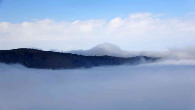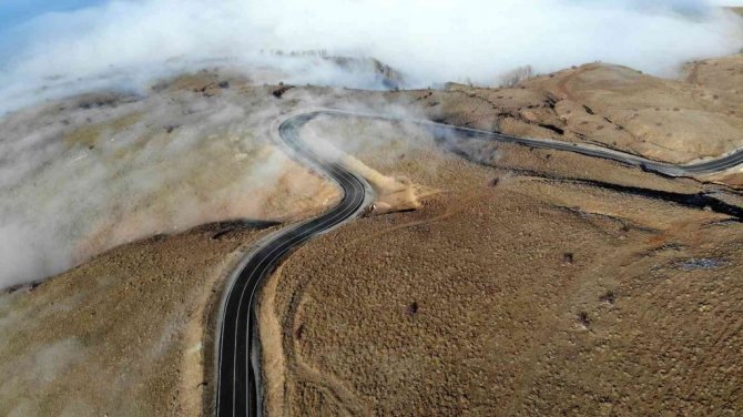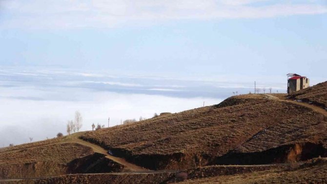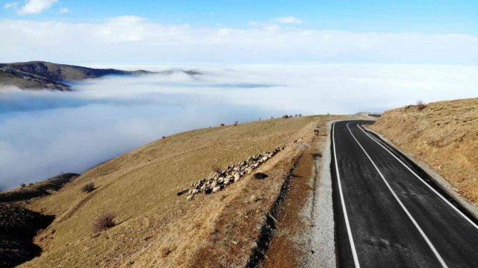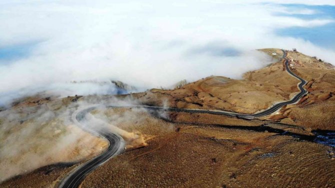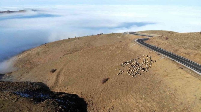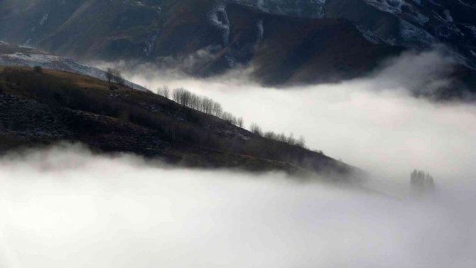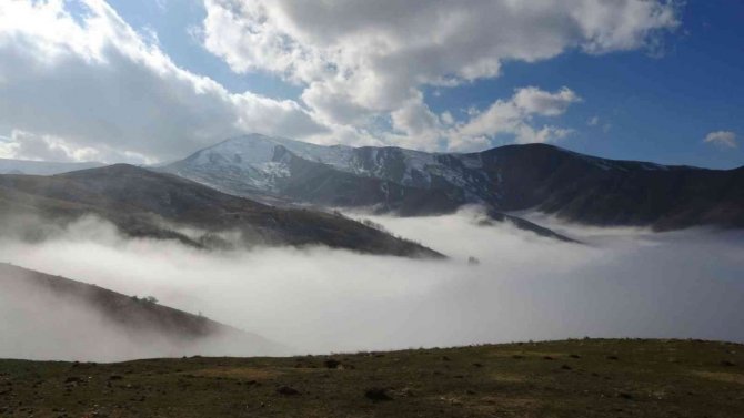 Muş’ta karlı dağlarla birleşen sis bulutları kartpostallık görüntüler oluşturdu