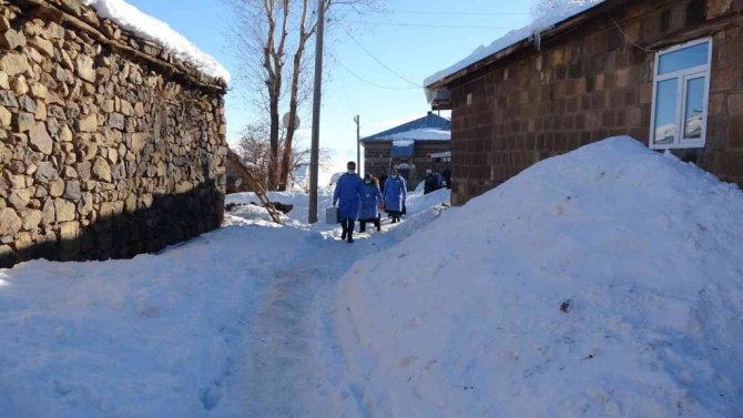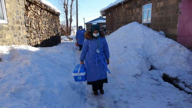 Hemşire Canan Sızan da korona virüs başladığından bu yana hastalıkla mücadelede yer aldıklarını belirterek, "Köylerdeki en ücra yerlere ulaşmaya çalışıyoruz. Sağlıkçılar olarak korona virüsle mücadelede her zaman ön saflarda yer alıyoruz. Hizmet vermeye geldik. Şu an bin 800 rakımlı bir köydeyiz. Aşıları yapmak için kapı kapı dolaşıyoruz. Aşısını yaptırmayan insanları ikna etme yoluna da gidiyoruz. Tüm arkadaşlarımızla özverili bir şekilde çalışıyoruz. Kar, kış, soğuk demeden mücadele veriyoruz. İnşallah biran önce aşı oranlarımız yükselir ve insanlarda derin bir nefes alır" ifadelerini kullandı.