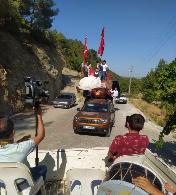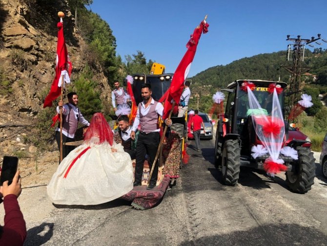 Denizli'nin Buldan ilçesinde kepçe operatörü olarak çalışan damat Umut Salman, gelin Ayşe Nur'u evinden almak için farklı ve renkli bir yola imza attı. Kepçenin yükleme bölümüne kanepe yerleştiren Salman, ardından kepçeyi süsleyerek gelin arabası yaptı. Vatandaşların şaşkın bakışlar arasında gelinin evine konvoyla giden damat, gelini kepçeye yerleştirdiği kanepeye bindirerek evden aldı. Davul zurna ekipleri ile birlikte tur atan çiftin konvoyuna traktör ve araçlar eşlik etti. Renkli görüntülerin oluştuğu konvoy mahallede büyük ilgi gördü.