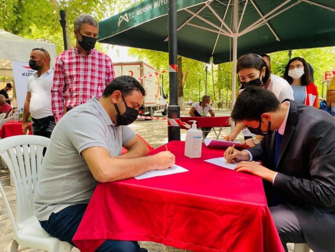 Mersin'in Mut ilçesinde Türk Kızılay Kan Bağışı Merkezi tarafından Karacaoğlan Çınaraltı parkında kan bağışı kampanyası düzenlendi.