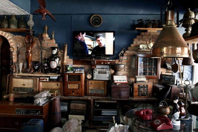 Bursa'nın Karacabey ilçesinde 20 yılı aşkındır kahvehane işleten Zeki Ertosun, yaklaşık 17 yıldır antika eşyalar topluyor. Topladığı antikaları kahvehanesinde teşhir eden Ertosun, 17 yıl önce bakır sehpa ile başladığı merakını müze haline getirdi. Radyodan plakçalara, telefondan minibüs kapısına kadar insanları eskiye götüren antikaları toplamanın büyük bir zevk olduğunu belirten Ertosun, "Atalarımızın kullandığı eşyaları yeni nesillere gösteriyoruz. Yeni nesillerin, eskiden neler kullanıldığını görmelerinde fayda var. Gelen herkesin ilgisini çekiyor. Buraya her gün gelenler alıştı. Ancak ilk defa gelenler çok şaşırıyor. Kimi zaman gelip antika ürününü bana vermek isteyen oluyor. Ya da ben gidip alıyorum. Bu kadar ürünün içerisinde en çok özen gösterdiğim ve gözüm gibi baktığım 1953 model kömürlü çay kazanıdır. Mesleğim gereği en sevdiğim objem budur" dedi.