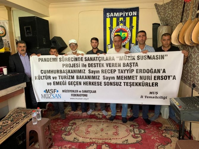 Türkiye Müzisyenler ve Sanatçılar Federasyonu (MÜZSAN) Muş İl Başkanı ve üyeleri, korona virüs tedbirleri kapsamında sağlanan destekler nedeniyle Cumhurbaşkanı Recep Tayyip Erdoğan'a teşekkür etti.
